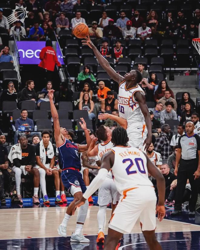 10号秀马卢阿奇是2025届选秀顺位最高的中锋,在太阳只出战了2场常规赛,场均出战8.5分钟,得到3.5分1篮板0.5助攻0.5失误。投篮命中率33.3%,三分命中率0%,罚球命中率83.3%。今年季前赛,他场均9.5分5.3篮板1助攻。
